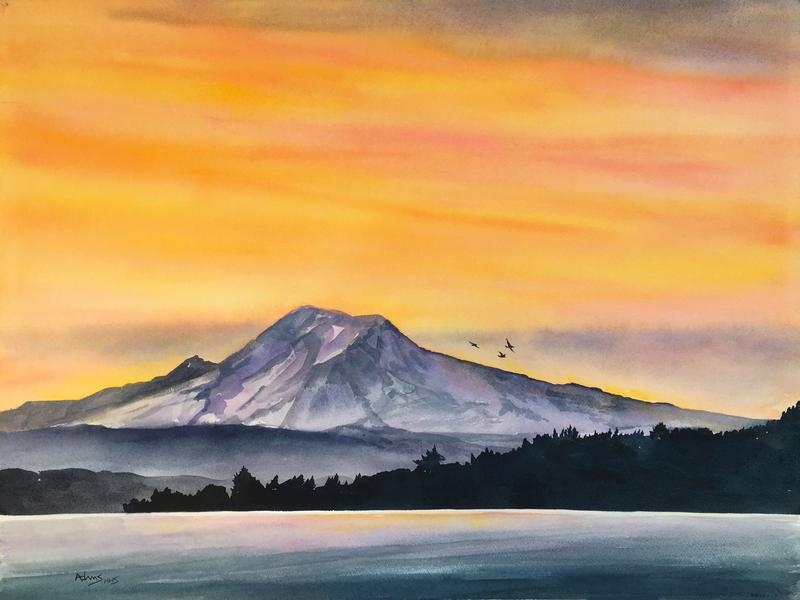 "The Mountain at Sunrise" 22x30" Watercolor