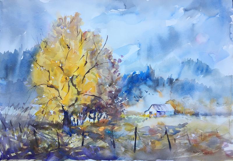 Painting "Lucky Jim" bluff on a fine September morning in the Methow Valley, Washington State.